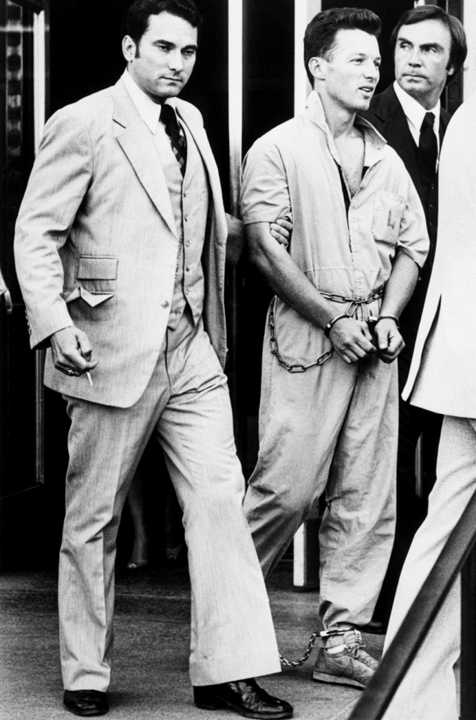 US Marshals escort captured fugitive Christopher Boyce in manacles from Seattle in 1981. Note the cigarette in the deputy’s right hand. Bettmann Archive via Getty Images.