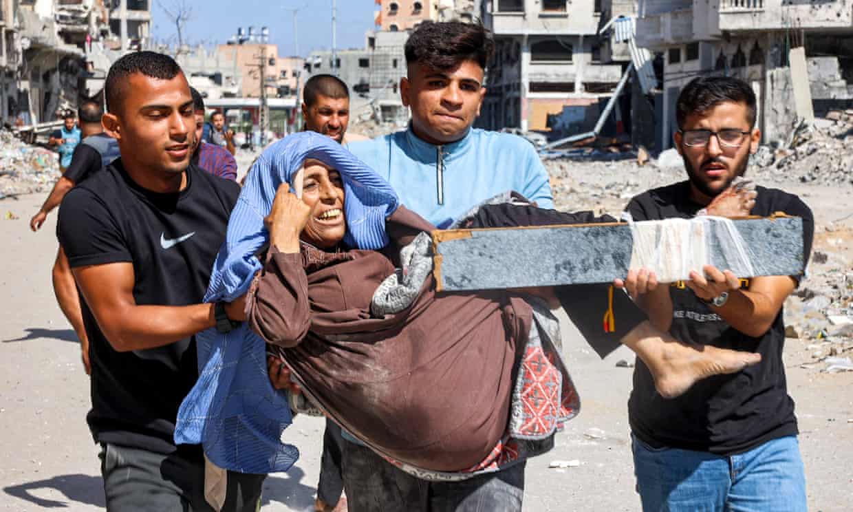 An injured woman is carried in Jabaliya after Israel issued an evacuation order. (Photo: Omar Al-Qattaa/AFP/Getty Images)