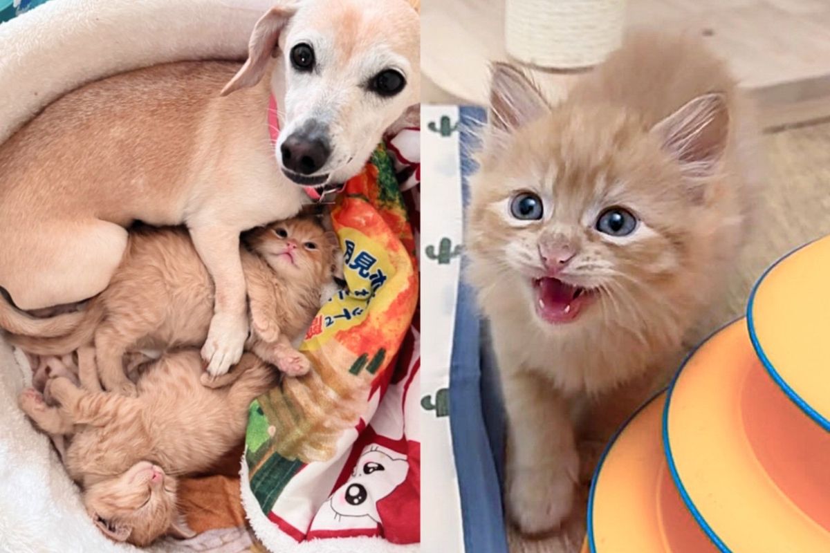 Two Tiny Rescue Kittens Have So Much Energy They Impress Family Dog