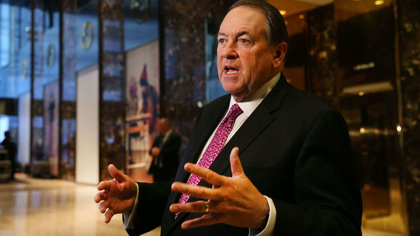 Pro-Settler, ultra-Christian reactionary Mike Huckabee gesticulating above will be US Ambassador to Israel. Expect more Palestinian evictions and deaths in the West Bank over the next four years. (Photo: 18 Nov 2016, NYC courtesy of Spencer Platt / Getty Images)