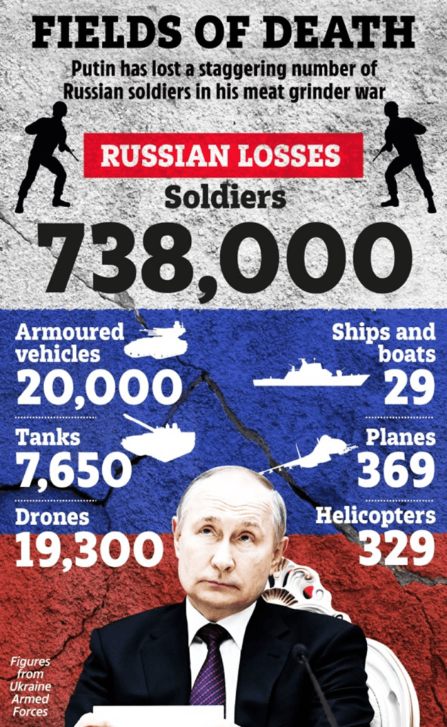 Russia’s staggering death toll marks the Russian tyrants most damaging period of his over 1,000-day-old conflict so far.