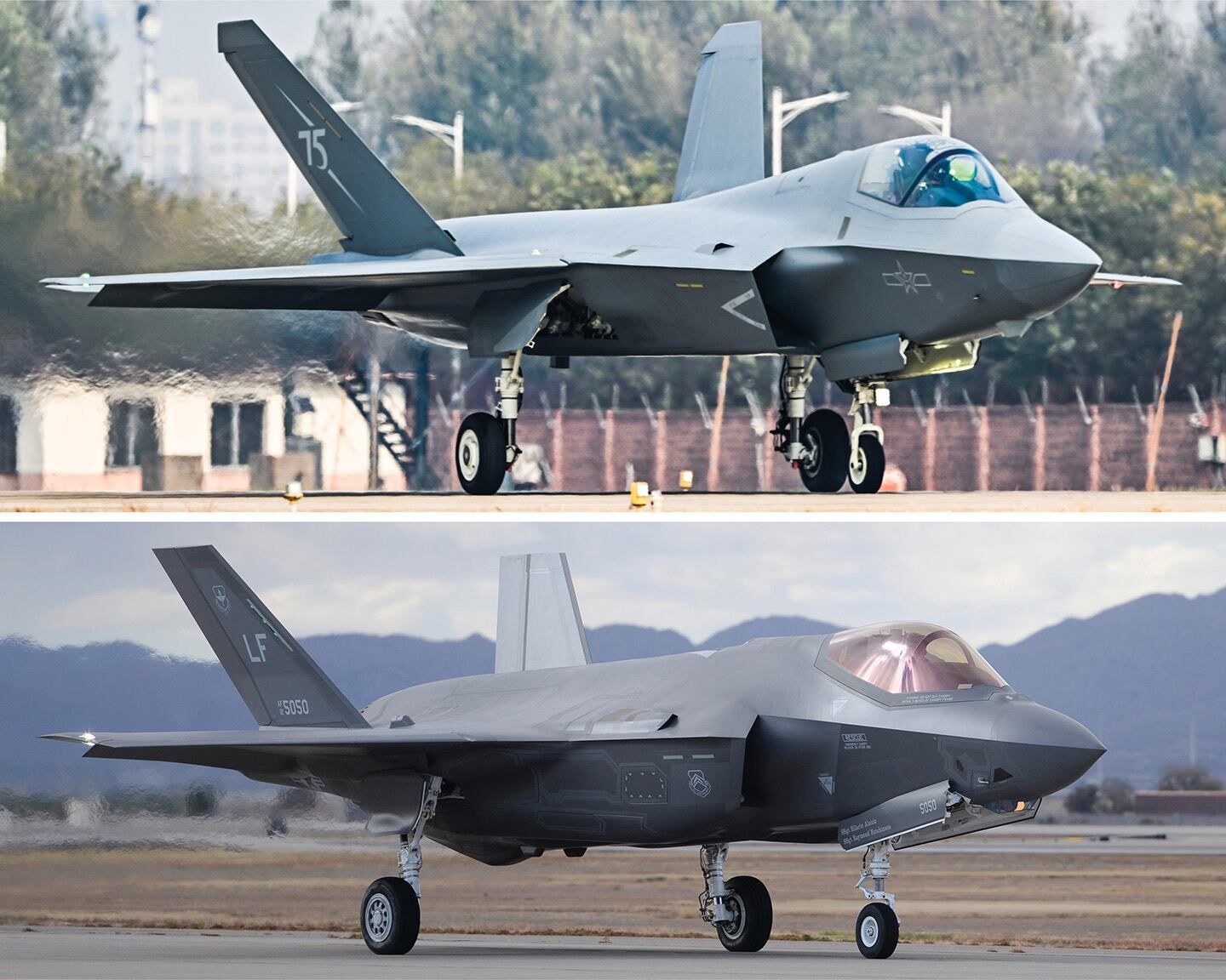 Chinese J-35A fighter (top) and American F-35 (bottom). (Photo: Chen Yang/Xinhua via Getty Images)