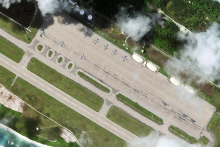 Open source satellite imagery shows the build up of the US strategic bomber taskforce on Diego Garcia, possibly one-third of the B2 fleet. (Photo: X)