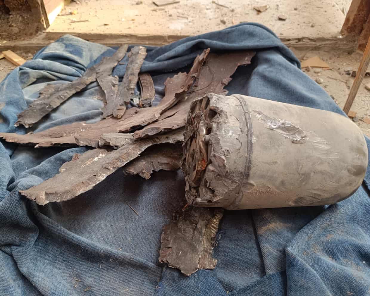 Ordnance experts identified the fragments as parts of an MK-82 general purpose bomb. (Photo: Enas Tantesh / The Guardian)