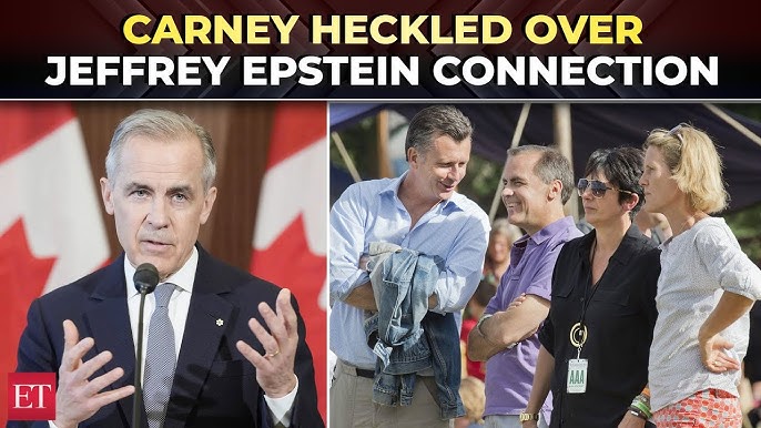 Canada PM Mark Carney (second from left) was photographed with Ghislaine Maxwell (second from right), along with his wife Diana Carney (right) at a British music festival in the summer of 2013. Canada PM Mark Carney denied knowing Jeffrey Epstein and stated he was ‘tangentially acquainted'” with Ghislaine Maxwell (Photo: News Licensing / MEGA)