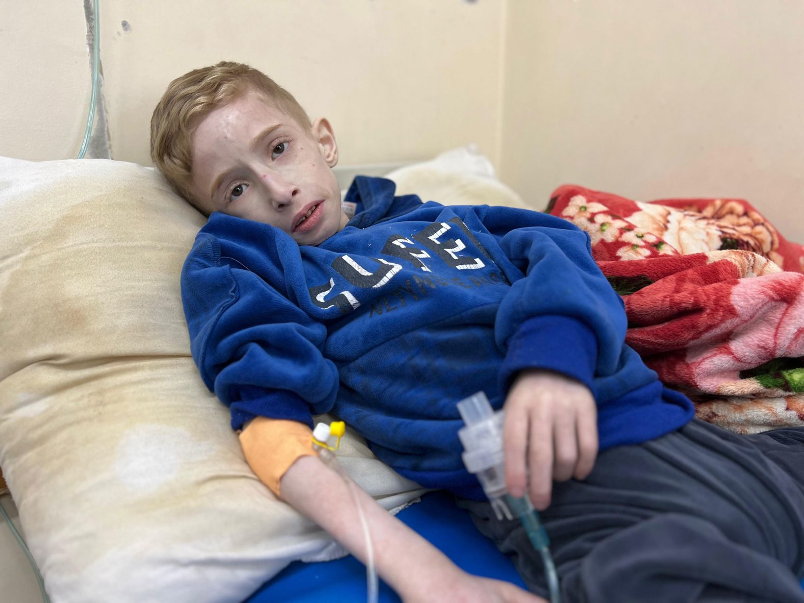 Hamdi al-Najjar is in critical condition in Nasser hospital where relatives try and comfort him. (Photo: Getty Images)